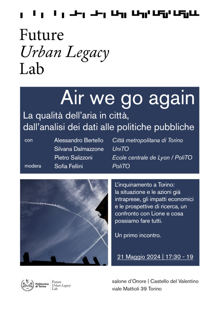 FULL is organising a series of thematic meetings as part of its research strands. This first seminar on the subject of air pollution in Turin is part of the ‘Practising Transition’ and ‘City of the Future’ strands. Speakers include Prof. Pietro Salizzoni, professor in Fluid Mechanics at the Ecole Centrale de Lyon and PoliTO (DIATI), Prof. Silvana Dalmazzone, professor in Environmental Economics and Natural Resources Management at UniTO, and Alessandro Bertello, official of the Turin Metropolitan City Department of the Environment and Environmental Supervision. Sofia Fellini for FULL will moderate the meeting.