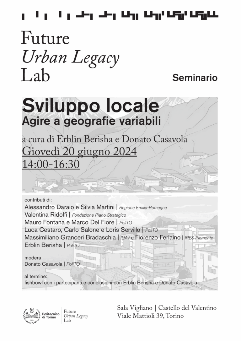 Il 20 giugno FULL ospiterà la presentazione di una raccolta di contributi recentemente pubblicata dalla rivista TERRITORIO. Attraverso un confronto con gli autori presenti, l’incontro sottolinea la necessità di una geometria variabile nell’individuazione di politiche e strumenti di governance in grado di accompagnare efficacemente lo sviluppo dei territori. L’incontro, curato da Erblin Berisha e Donato Casavola (Politecnico di Torino), vede la partecipazione di Alessandro Daraio e Silvia Martini, Regione Emilia-Romagna; Valentina Ridolfi, Fondazione Piano Strategico Rimini; Mauro Fontana e Marco Del Fiore, Politecnico di Torino; Luca Cestaro, Carlo Salone e Loris Antonio Servillo, Politecnico di Torino; Massimiliano Granceri Bradaschia, IUAV Università di Venezia; e Fiorenzo Ferlaino, IRES Piemonte.