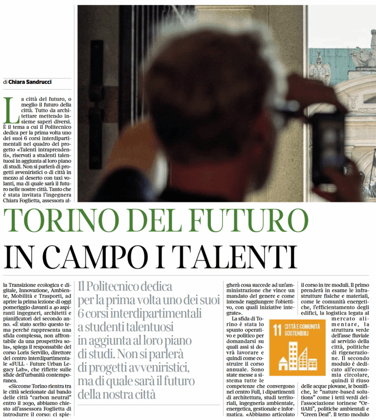 Turin, 4 November 2022. “Cities of the Future” is the course that FULL offers to students at the Polytechnic University of Turin who, selected on merit, participate in the “Intraprendenti” programme.