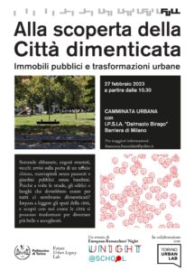 URBAN WALK with I.P.S.I.A. ‘Dalmazio Birago’ in Barriera di Milano Lowered shutters, emptied shops, old notices on a closed door, pavements without passers-by and public gardens without children. Why do streets, buildings or places that should be for everyone sometimes seem forgotten to us? Learn how to read city spaces, and discover with us how […]