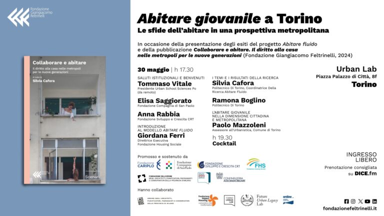 On the occasion of the presentation of the results of the project “Abitare fluido” (Fluid Living) and the publication “Collaborare e abitare. The right to housing in cities for the new generations” (Fondazione Giangiacomo Feltrinelli, 2024), Urban Lab will host this meeting with Silvia Cafora of FULL as curator of the publication. This is the second presentation event related to the project, following the one held in Milan on 23 May.