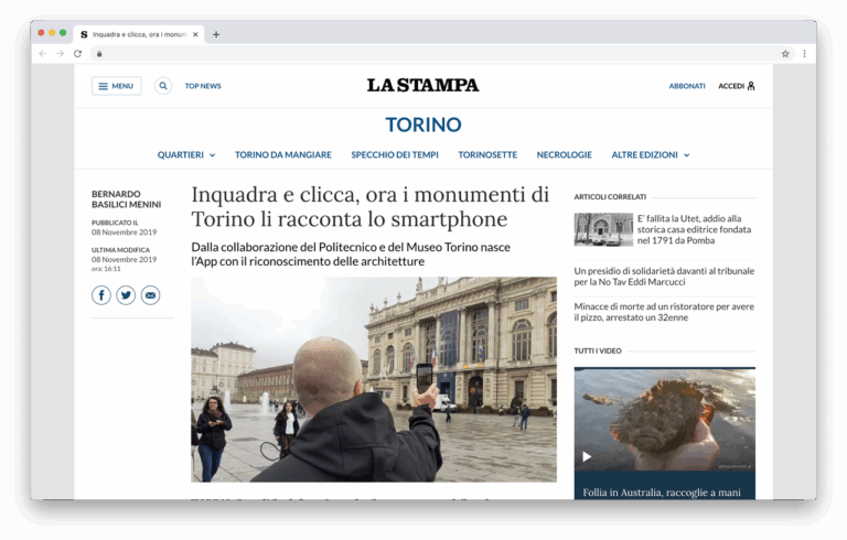 Prendi il telefono, inquadra il monumento e dallo schermo verranno fuori tutte le informazioni. Senza Qr code, senza antenne: solo con il programma che riconosce l’opera inquadrata. E’ stata presentata oggi, venerdì 8 novembre, Arch.i, applicazione (già disponibile su Apple store e a breve anche su Ios) sviluppata dal centro interdipartimentale Full del Politecnico di Torino, frutto del lavoro di due anni di un team di sei persone.